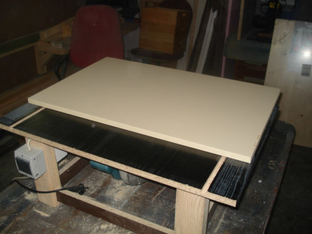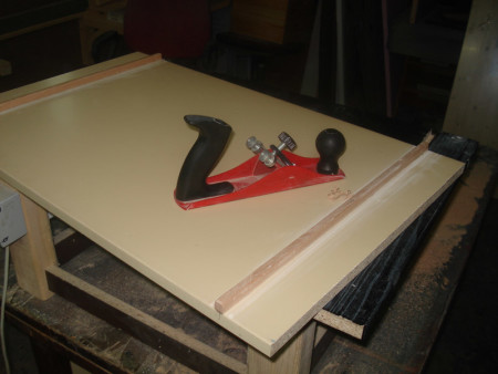 Slika 8 – Neće da kliza: I taman kad sam pomislio da je sve OK – ploča ni makac. Nemam pojma šta se desilo, klizači su pojedinačno sasvim lijepo klizili a poslije lijepljenja – ništa. Kao i obično, blanja je tu da spasi stvar i ponovo „prokliza“ ploču.