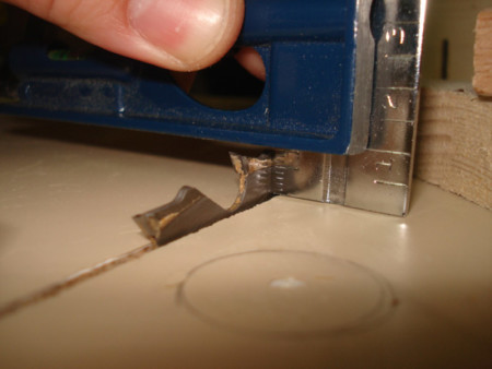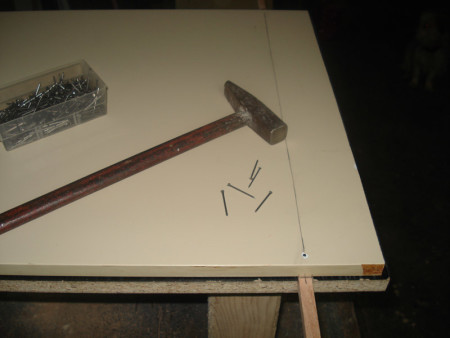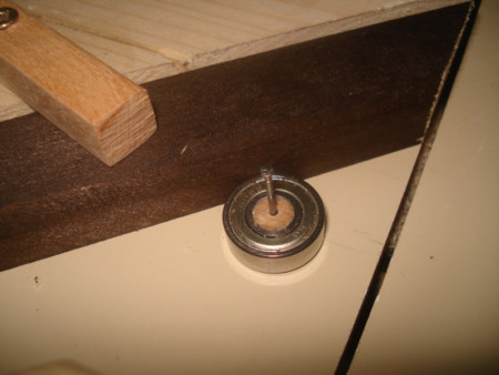 Slika 27: Evo i vođice u akciji. Ležaj postavimo kako treba da stoji i odozgo ukucamo ekser u ploču. Super radi.
