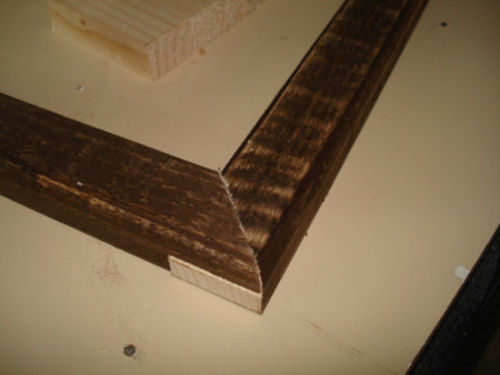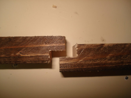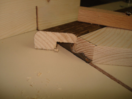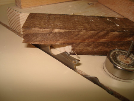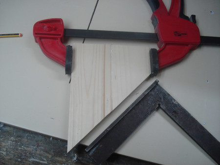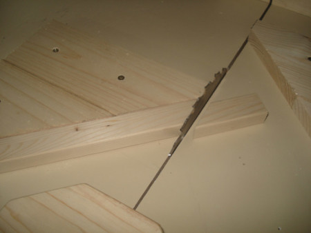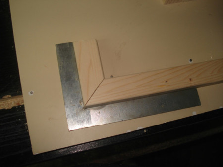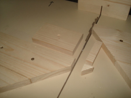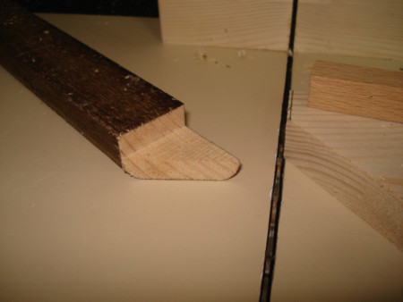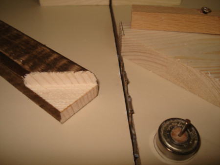 Slika 14: Sledeće na redu je bilo pravljenje ovih vođica ili firunga. Ger cirkularom sam po jedan kraj izrezao na 45 stepeni i letve čeono ulijepio kao na slici.