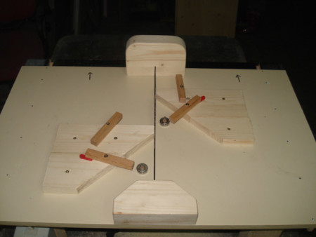 Slika 21: Sledeći na redu su bili neki elementi uz čiju pomoć ćemo pričvrstiti letve koje se režu. Amerikanci imaju ovu „toggle clamp“ prikazanu na slici i ona bi ovdje bila idelana da letve pritisnemo odozgo. Ali … toga „u nas“ nema pa …