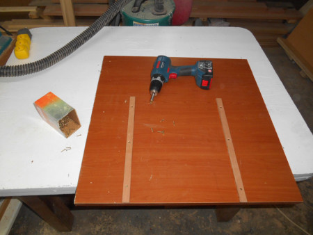 Slika 4 Na letvice sa epoxy-jem nalegao sam ploču i nju opteretio … ger cirkularom. Sve po radionici danas „pršti“ od gerova.
