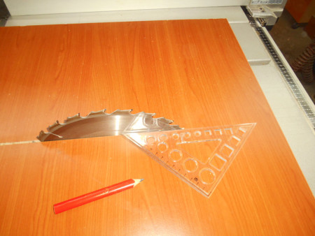 Slika 8 Pomoću lenjira zacrtana linija pod 45 stepeni u odnosu na list cirkulara (cirkular isključen iz struje – obavezno).