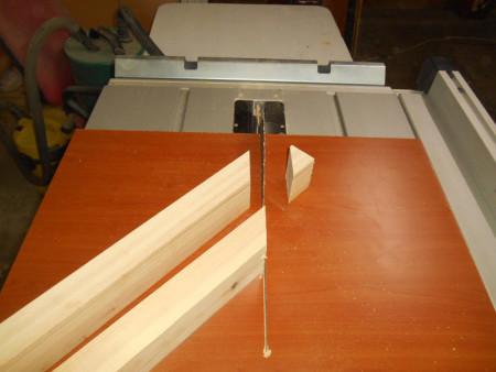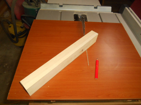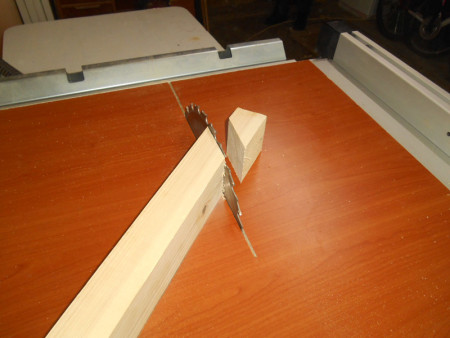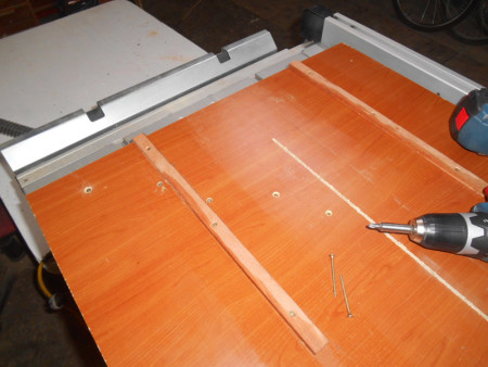 Slika 14 Ostala je još srednja letva. Njen vrh sam na sad već gotovom klizaču „našiljio“ pod 45 stepeni i takođe je ušarafio. Srednja letva je važna kao zaštita od lista cirkulara.
