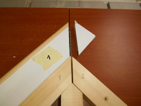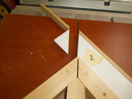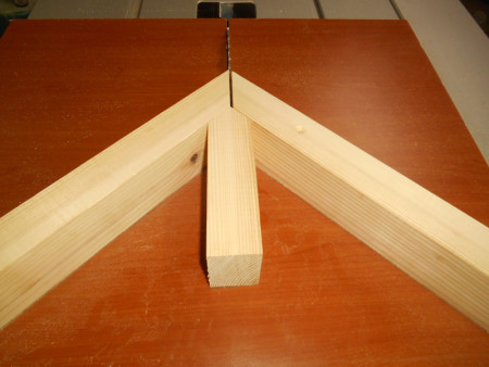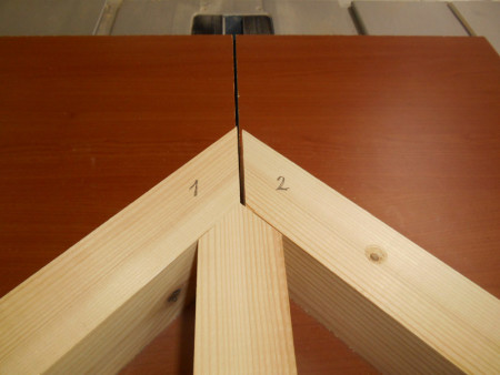 Slika 12 Letvu za desni oslonac prvo izrežemo pod 45 stepeni koristeći već urađeni lijevi oslonac.