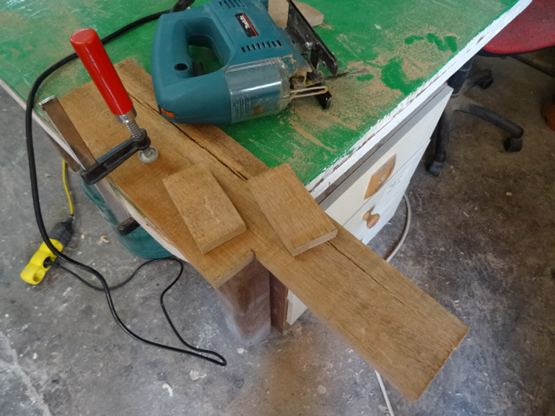 Slika 17 – Izrada nogu: Noge moraju biti čvrste na cimanja lijevo-desno i naprijed-nazad. Takođe ću ih napraviti na visinu od 10cm kako bi se lakše mogla čisiti prašina ispod. Imao sam jednu deblju dasku.