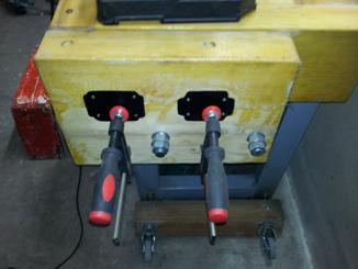Ukupna dužina ploče je samo 1,35m bez stega. Vi ćete naravno odabrati onu dužinu koja odgovara vašem prostoru, ali ćete naravno morati da prilagodite i ostale dimenzije stola u tom slučaju. Gvožđe sa betonom mnogostruko je jače i teže od drveta. Na ovaj način težina stola povećala se na oko 160kg. Samo težište ovog stola je znatno niže nego kod drvenog stola, i za razliku od malog drvenog, stabilan je kao “crna zemlja”. Radi lakšeg premeštanja po radionici instalirao sam mu i točkove na koje se, po potrebi, može podići. Sto je, sada već, u upotrebi nekih godinu dana i ne mogu da opišem koliko sam zadovoljan njegovom funkcionalnošću i stabilnošću. |