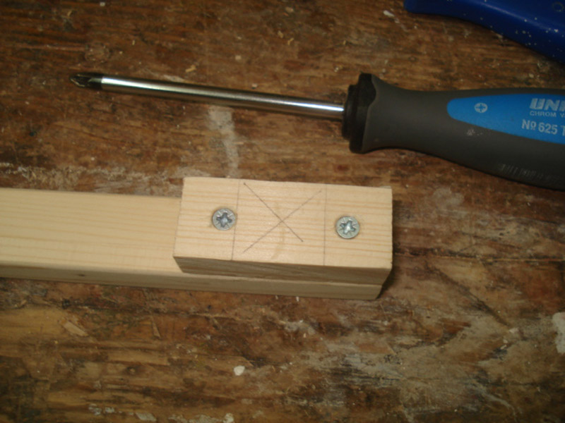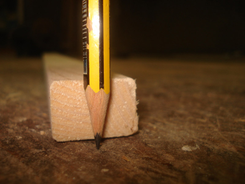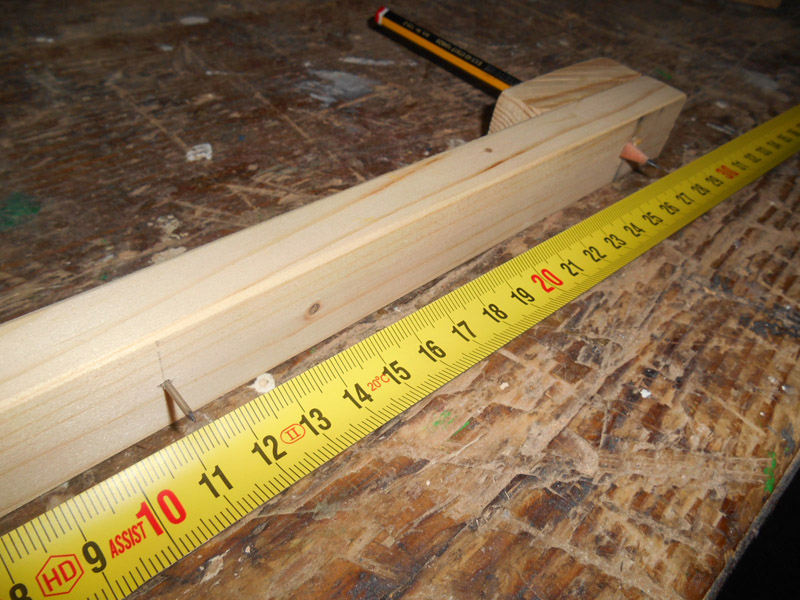 Na protrebnom rastojanju od vrha olovke se u letvici izbuši rupa (isto „knap“) i kroz nju se provuče ekserčić.